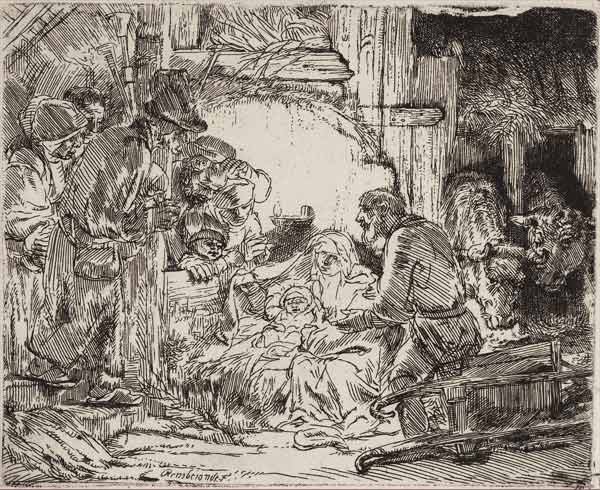 Схема этих сцен обычно очень лаконична: в центре помещаются ясли с Младенцем, рядом восседает на камне или в плетеном кресле Богородица, в небе — Вифлеемская звезда. У яслей изображаются осел и вол, о присутствии которых в вертепе повествует Предание. Вол понимается толкователями как символ подзаконного иудейского народа, а осел — как символ не ведающих истинного Бога язычников. Иногда в композицию включается изображение пастуха, пришедшего поклониться Христу.