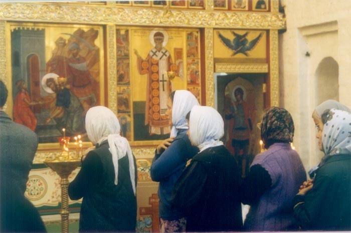 Китайские узоры иконостаса, церковные старушки в кладовочных халатах, бряканье железного ведра, все вдруг превратилось в драгоценные камни картины Русской Литургии. Как мама. Разве мама красивая или не красивая? Она выше. Она как небо. Она — МАМА. Любимая моя Церковь!
