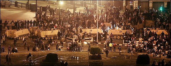 «В нескольких тюрьмах бежали заключенные. Многих удалось поймать, но, к сожалению, не всех. Поэтому криминальный элемент пополняет колонны мародеров. На окраинах Каира продолжаются пожары. В магазинах заканчиваются продукты. Из огромного количества супермаркетов открыты единицы, но и в них нет хлеба, сахара, молока, соли. За простой дешевой едой — огромные очереди.»