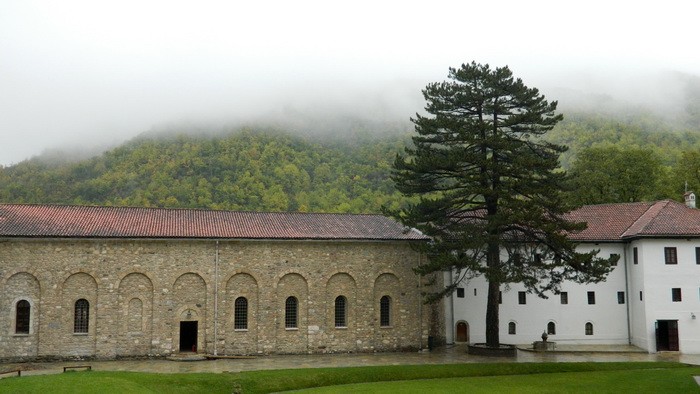 Из трапезной мы выходили в прямом смысле «под благословением». Следуя древней монастырской традиции, в Дечанах по окончании трапезы священник становится на выходе и, пока все выходят, держит благословляющую руку. Такой обычай существует и в греческих монастырях. Это придает трапезе особую торжественность и одухотворенность.