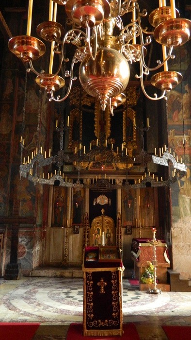 Тот день был днем памяти сербского святого преподобного Прохора Пчинского. На утрени совершался полиелей, во время которого поются особые псалмы и раскручивается большое паникадило в центре храма. А перед этим на паникадиле были аккуратно зажжены свечи, причем не все. Все зажигаются только тогда, когда совершается Всенощное бдение. Стоя на службе, я внимательно наблюдала за монахом-экклесиархом, как он в определенные моменты гасил или зажигал лампаду над царскими вратами, зажигал свечи. И все это он делал с благоговением. Самое главное то, что все это имеет свой определенный смысл. Например, в нашей русской церковной практике сохранилась устойчивая традиция гасить свечи на время чтения Шестопсалмия, а после, на «Бог Господь», их вновь зажигать, но вот в Дечанах это происходит иначе. Еще интересный момент. Мы подумали: раз служится полиелей, значит, должно быть и помазание, как это бывает у нас. Но, к нашему удивлению, этого не произошло, а после пения псалмов стали читаться каноны. Читают братия достаточно быстро — не успели мы оглянуться, как приблизилось начало Литургии. Тоже интересная особенность. Антифоны и блаженны у них, в основном, читаются, что нам достаточно непривычно слышать. Особый отпечаток на душе оставила Херувимская песнь. Пел ее один монах — отец Лука. Его голос на фоне глубокого исона звучал очень проникновенно. После службы еще долго в сердце слышалось его пение.