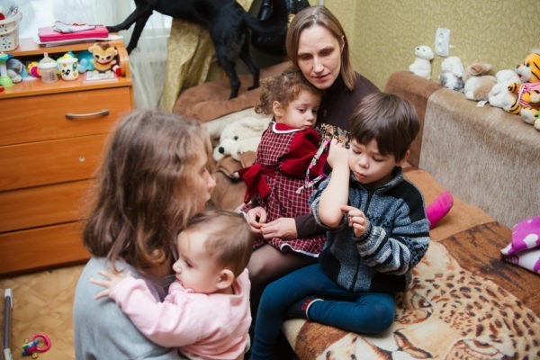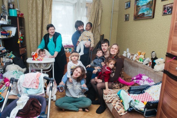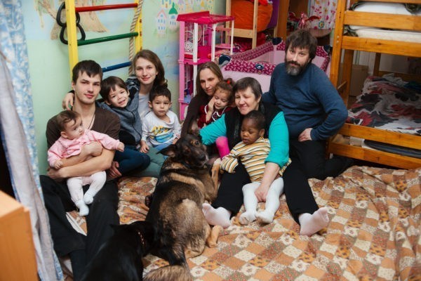 Входная дверь хлопает каждые пять минут. Это приехали старшие дети – двадцатидвухлетняя Светлана, которая учится на дефектолога, двадцатилетний Алексей, курсант-речник и некоторое количество их друзей. Посчитать невозможно, потому что все хаотически передвигаются по квартире, каждый носит на руках какого-нибудь произвольного младшего ребенка, что-то рассказывает, смеется, ест. Артем снова работает, Таня наконец присела на матрас, лежащий на полу, и вытянула гудящие ноги, над нами по шведской стенке броуновским движением передвигаются Амид, Руслан старший и Руслан-младший, Кристина и Сашка.