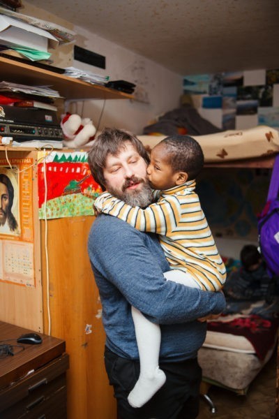 «Отец Макарий привел нас к вере, а вскоре сам умер от туберкулеза, – говорит Артем, – Скажу так, на этом пути много было чудес, только рассказывать сложно, духовный опыт дело личное». Руслан перебрался с коленок Артема ему на плечи, дует в ухо и смеется. Артем невозмутимо продолжает работать.