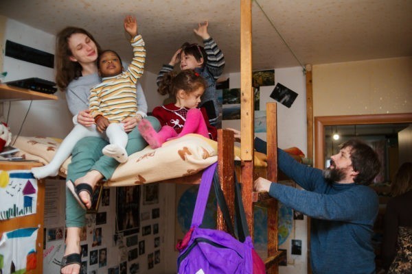 Алена домучивает «Дубровского», хотя вообще-то хотела бы таскать на руках Еву или играть с Кристиной и Амидом в лошадок. Она посматривает со своего второго этажа кровати на бегающих малышей, готова сорваться, полететь, запрыгать, закричать. Но Артем, все еще работая за компьютером, зорко следит за процессом чтения, задает наводящие вопросы, и Алена втягивается обратно в пушкинский текст. Она на семейном обучении и в школу ей нужно идти только к часу дня.