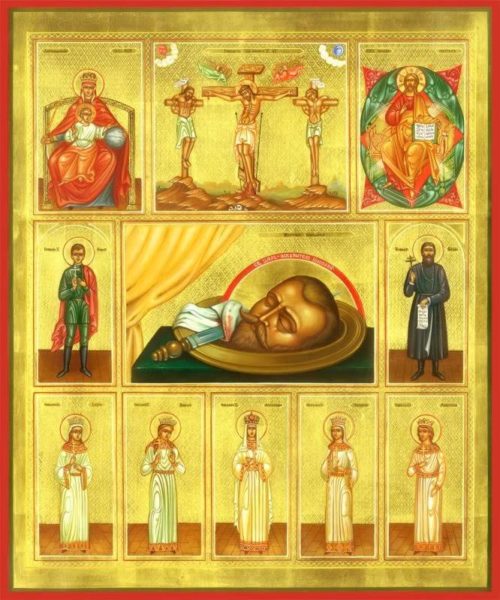 Нередко встречаются изображение императора Николая и императрицы Александры Федоровны вместе на одной иконе, а иногда их образ помещают в среднике, а на полях изображают княжон и цесаревича, что подчеркивает единство царской семьи перед лицом страданий, выпавших на их долю.