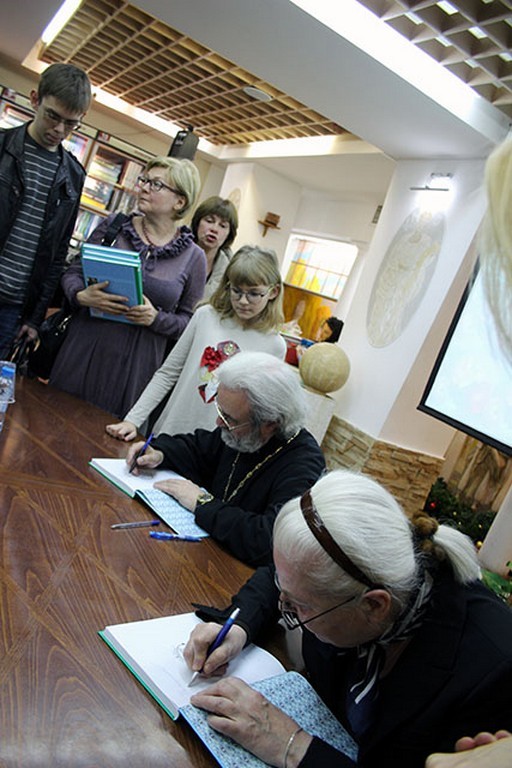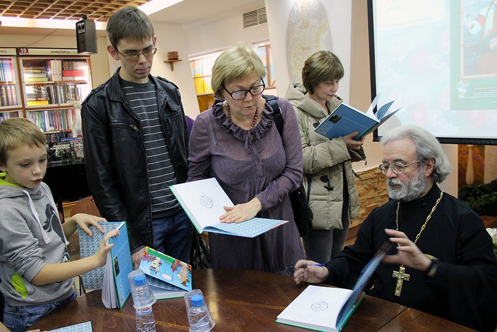 На презентации сборника в магазине «Библио-Глобус» протоиерей Александр Ильяшенко представил книгу участникам встречи: