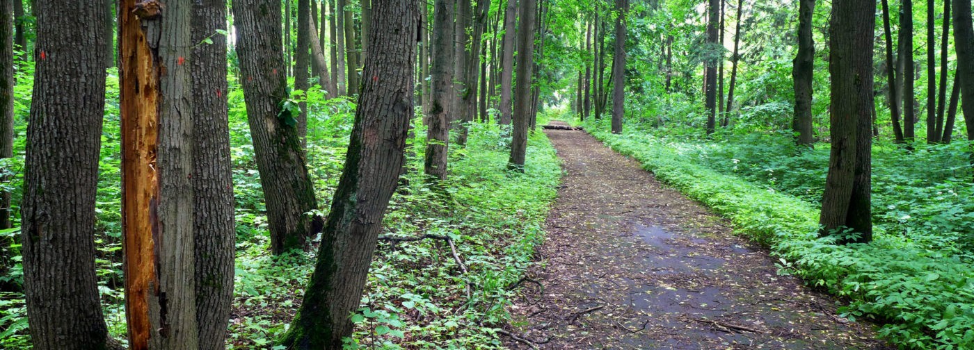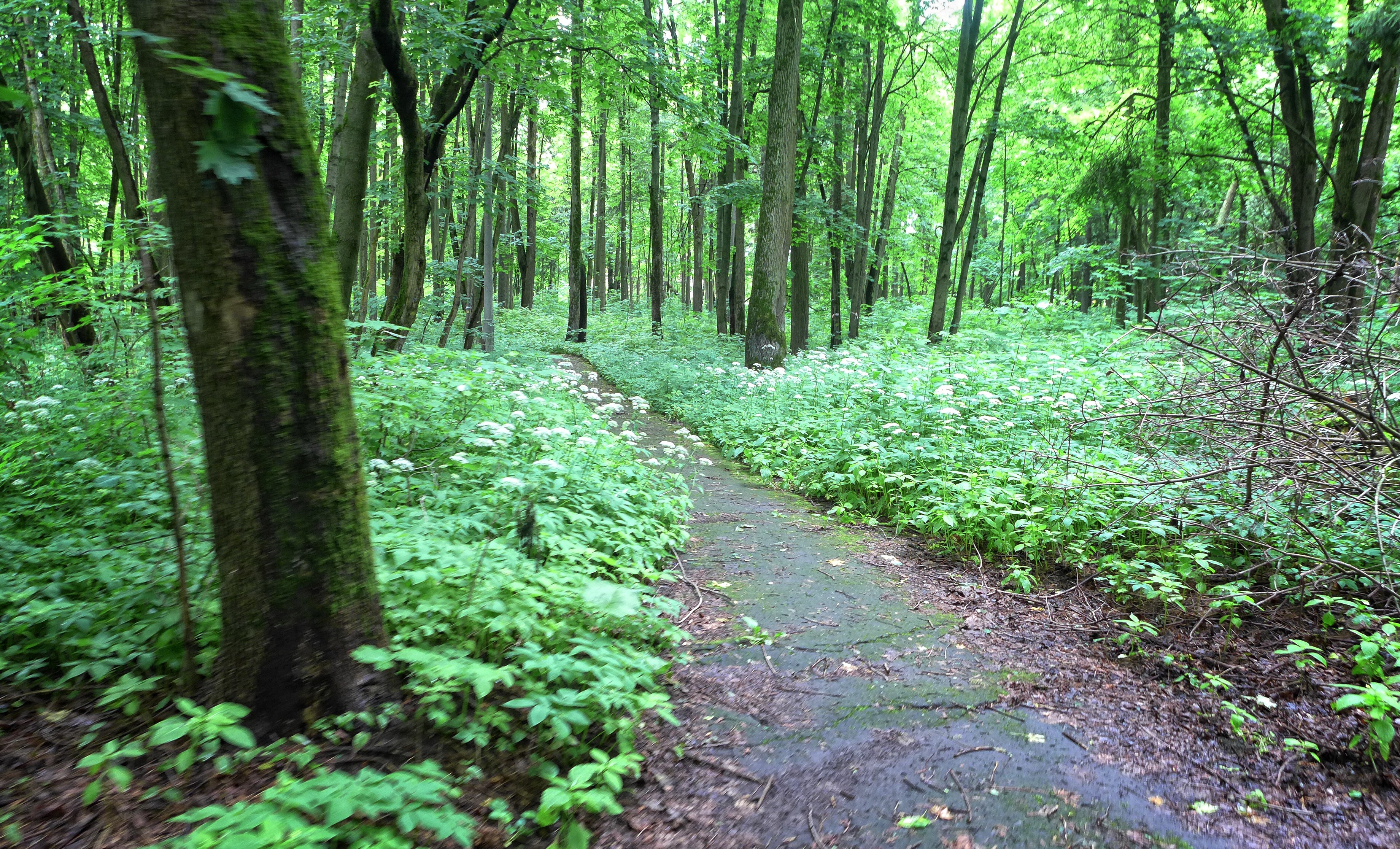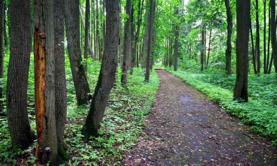 Деревья, деревья, деревья; буйная растительность, уходящая вверх, сколько хватает глаз. Асфальтовые дорожки, почти побежденные травой; остовы фонарей. То там, то здесь на деревьях полицейские ленточки: знак того, что дерево больно, его нужно лечить или вырубать и заменять новым.