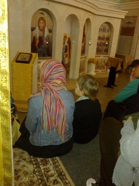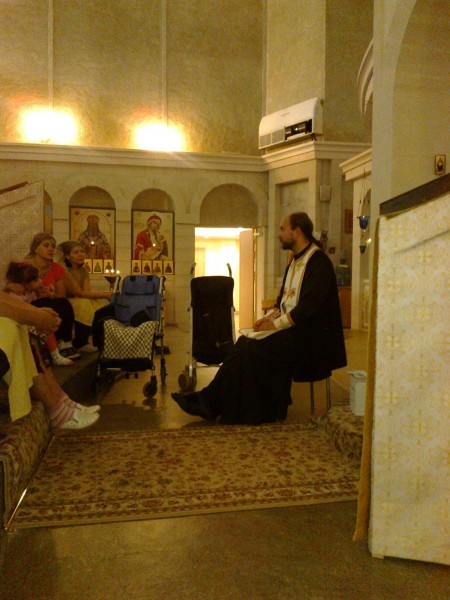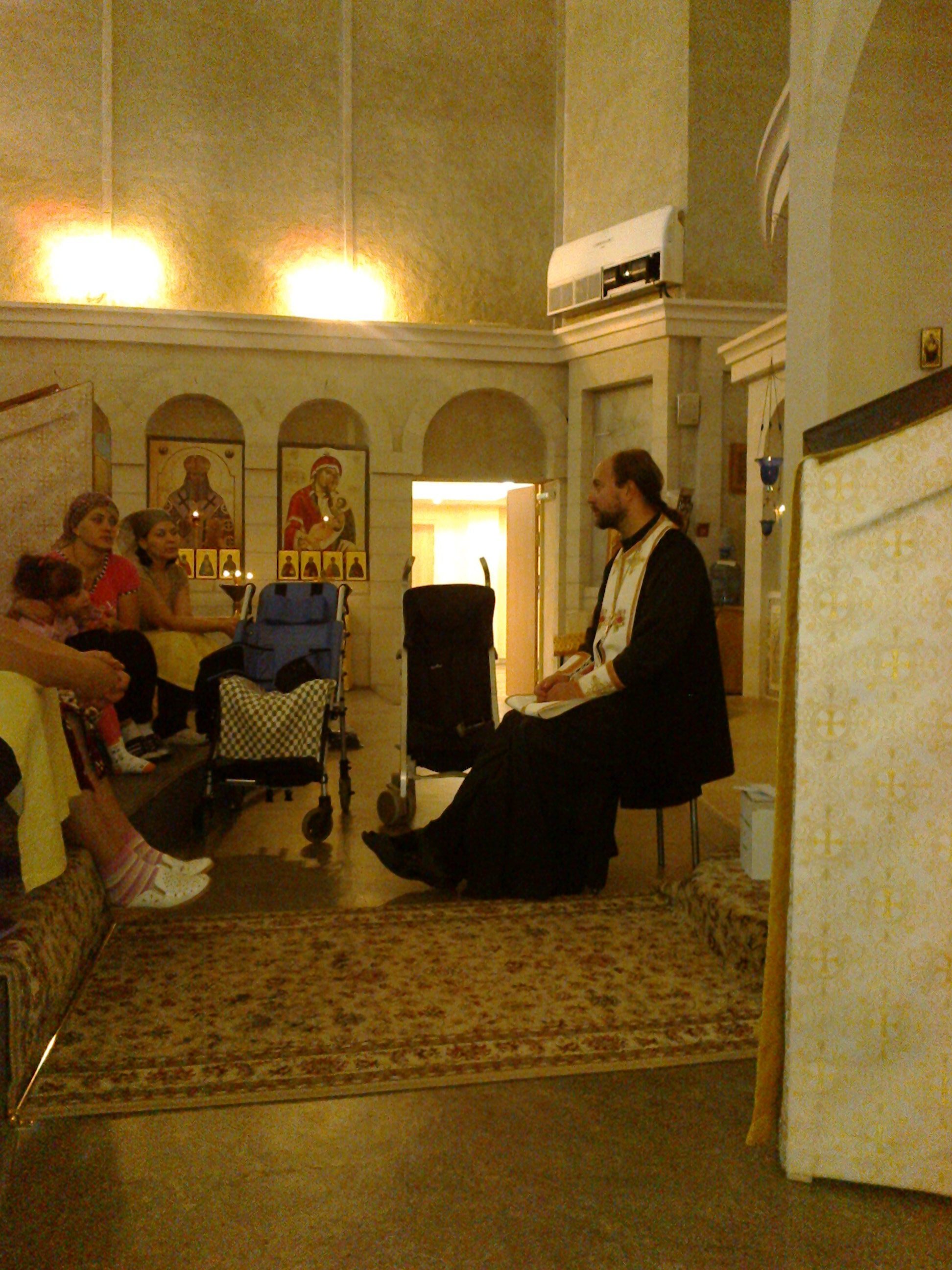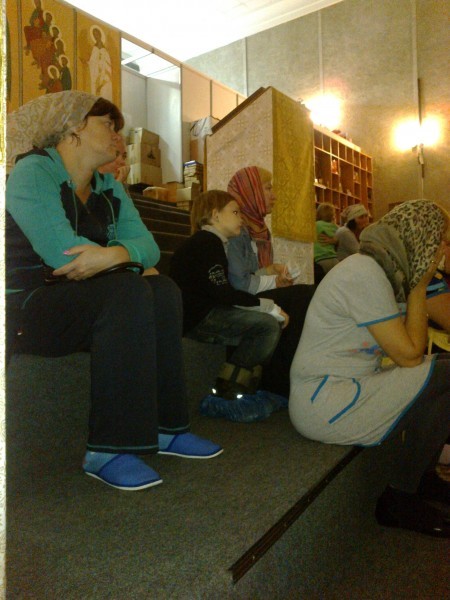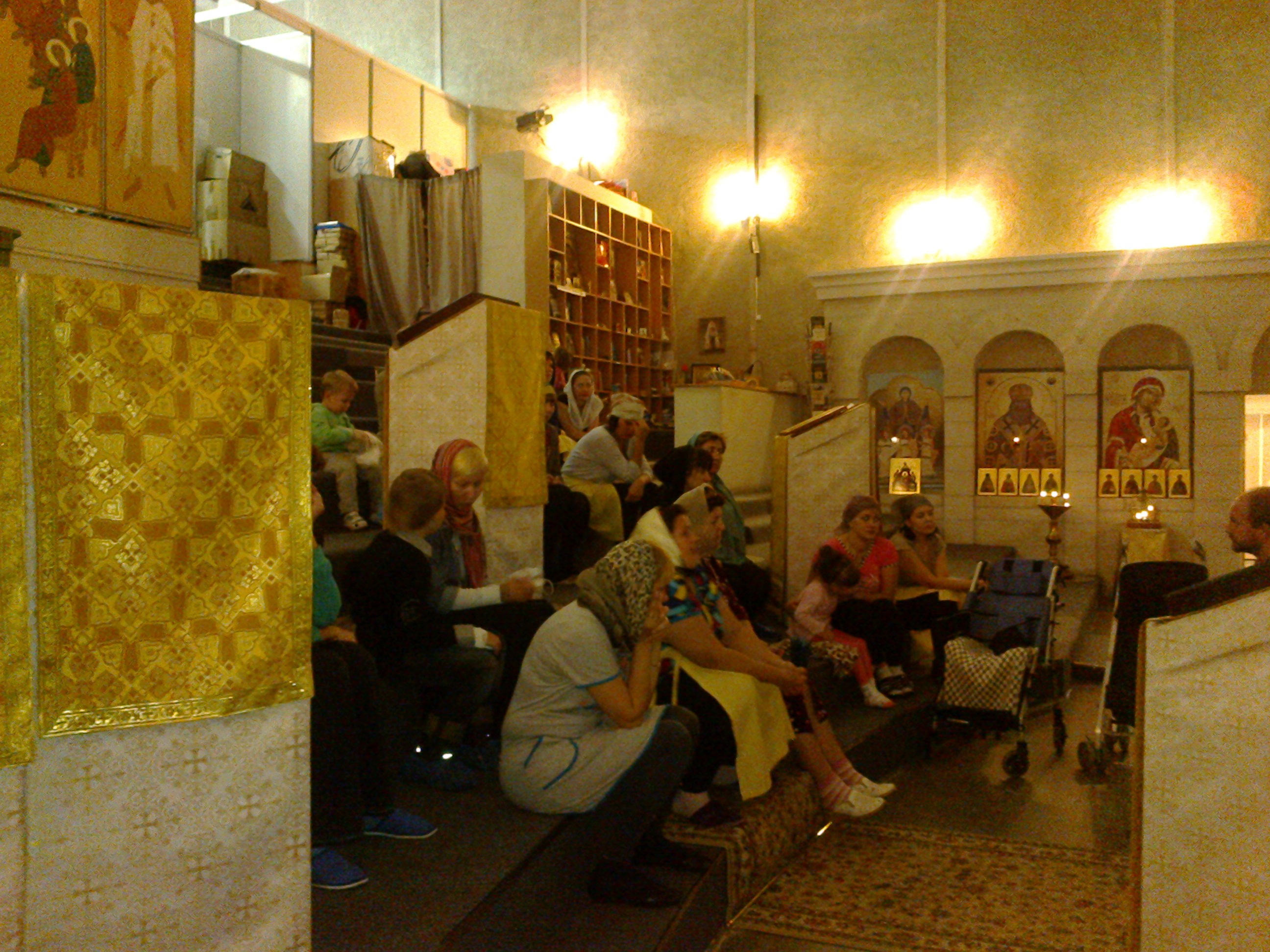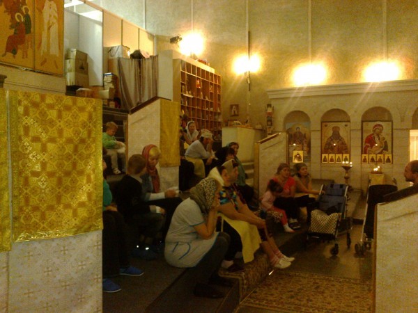 Народ действительно собрался разный. Перед вечерней службой отец Иоанн, по традиции, беседует с прихожанами, а я смотрю на лица. Те две женщины, похоже, армянки, вот с задних рядов задали вопрос, и слышится южно-русское протяжное [г]. Однако общее настроение одно на всех – тревога за детей – это повторяется через вопрос. И ещё, пожалуй, какая-то напряжённая жажда внимания, совета, авторитетного спокойного слова.