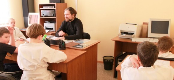 Сейчас большинство воспитанников клуба — дети из невоцерковленных семей. Но на вопрос, что самое сложное в преподавании таким неподготовленным ученикам преподаватель Закона Божиего клирик того же храма священник Василий Куценко отвечает: заинтересовать и удержать внимание, потому что и церковные, и нецерковные — просто дети.