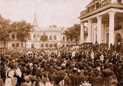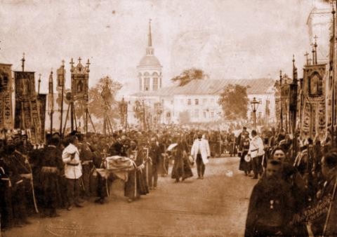 Крестный ход перед алтарем Успенского собора 19 июля 1903 г.