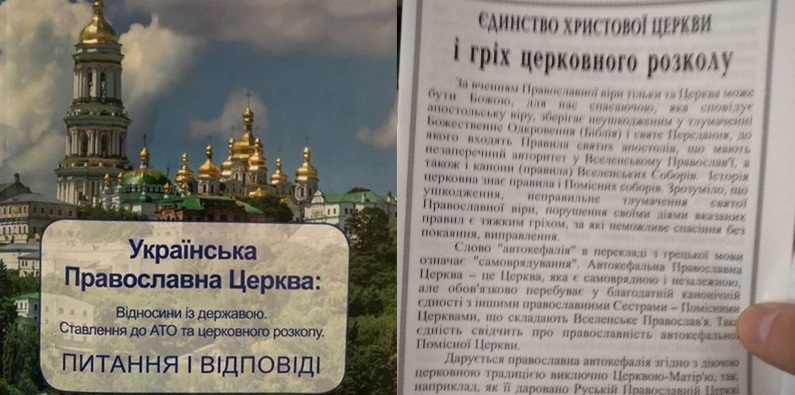 Во время обысков было изъято 75 экземпляров брошюры «Украинская Православная Церковь: Отношения с государством. Отношение к АТО и церковному расколу. Вопросы и ответы». В пресс-центре СБУ заявили, что она уже попадала в поле зрения службы и на нее «есть соответствующее заключение эксперта».