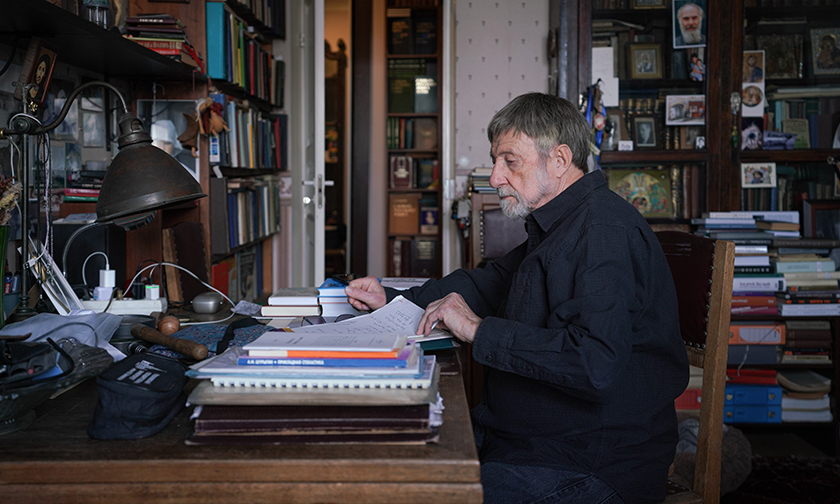 Когда я не в университете, я работаю дома. У меня много письменных столов, на каждом из которых разложены разные бумаги, рукописи, папки, чтобы ничего не перепутать. Вообще, как вы видите, все горизонтальные поверхности у меня в доме моментально заполняются книгами и бумагами. Я обещал жене после Нового года разобрать вот эти папки. Придется еще больше работать, чтобы сдержать обещание (смеется).