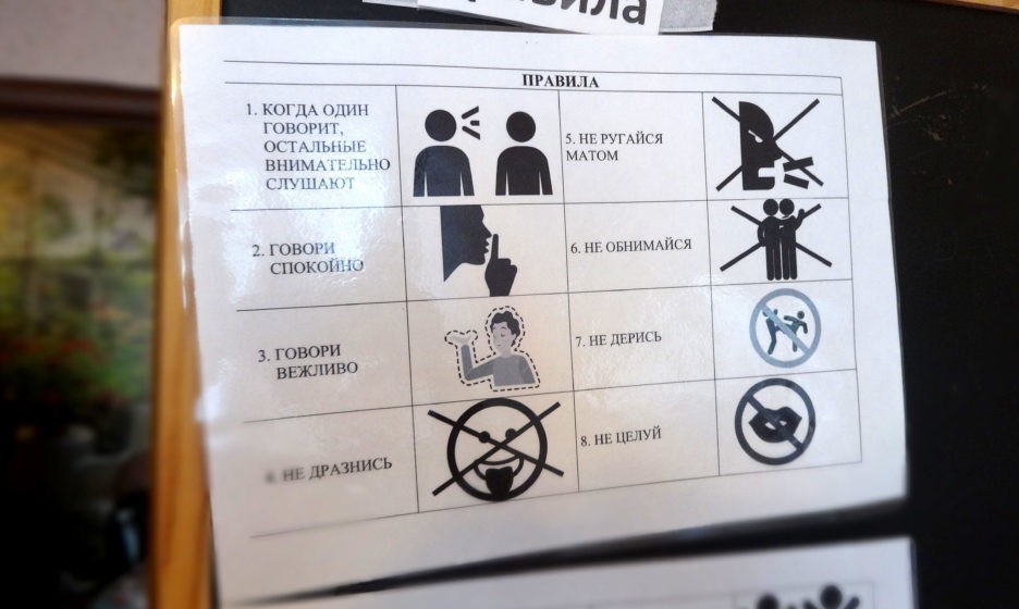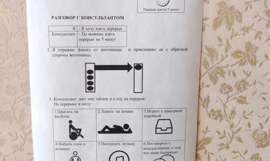 Четкий алгоритм действий – по сути, рутина – дает детям стабильность и спокойствие. Ведь ребята с аутизмом очень тревожные, для них любые изменения – катастрофа, в результате возникает не очень стандартное поведение. Кстати, за хорошее поведение ребята получают «зарплату» – словесное поощрение, шоколад, сок или другую любимую вещь. Для этого им надо соблюдать четкие правила квартиры: «Говори негромко», «Не дразнись», «Не дерись», «Держи дистанцию», «Участвуй в активностях» и другие.