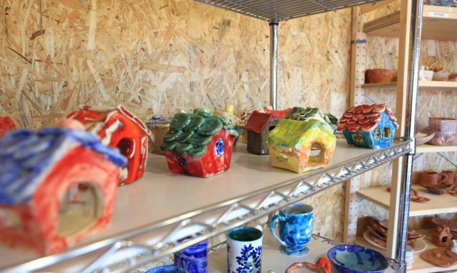 Еще прошлым летом мастерские представляли собой обычную палатку с москитной сеткой на территории церкви, где любой желающий мог полепить под руководством мастеров: петербуржцы творили здесь рядом с местными, особые дети – с ребятами без диагнозов, мамы с волонтерами, прихожане с любопытными. Однажды в палатку заглянула Наталья Злобина, директор АНО «Мария» – центра психолого-трудовой реабилитации семей, имеющих детей с особенностями развития. Она же привела знакомого, который выделил средства на стационарные мастерские – в светлом доме с большими окнами, с дорогой муфельной печью, гончарным кругом и другим оборудованием. Построили его всего за сезон.