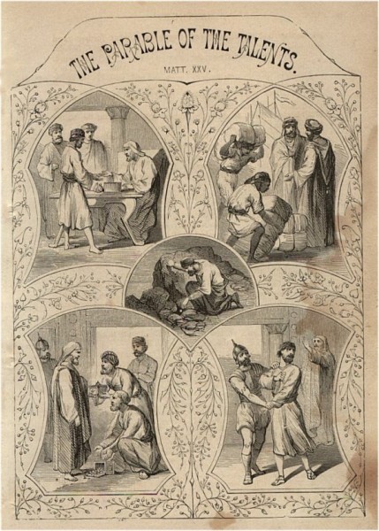 Сказал Господь притчу сию: некоторый человек, отправляясь в чужую страну, призвал рабов своих и поручил им имение свое: и одному дал он пять талантов, другому два, иному один, каждому по его силе; и тотчас отправился. Получивший пять талантов пошел, употребил их в дело и приобрел другие пять талантов; точно так же и получивший два таланта приобрел другие два; получивший же один талант пошел и закопал его в землю и скрыл серебро господина своего. По долгом времени, приходит господин рабов тех и требует у них отчета. И, подойдя, получивший пять талантов принес другие пять талантов и говорит: господин! пять талантов ты дал мне; вот, другие пять талантов я приобрел на них. Господин его сказал ему: хорошо, добрый и верный раб! в малом ты был верен, над многим тебя поставлю; войди в радость господина твоего. Подошел также и получивший два таланта и сказал: господин! два таланта ты дал мне; вот, другие два таланта я приобрел на них. Господин его сказал ему: хорошо, добрый и верный раб! в малом ты был верен, над многим тебя поставлю; войди в радость господина твоего. Подошел и получивший один талант и сказал: господин! я знал тебя, что ты человек жестокий, жнешь, где не сеял, и собираешь, где не рассыпал, и, убоявшись, пошел и скрыл талант твой в земле; вот тебе твое. Господин же его сказал ему в ответ: лукавый раб и ленивый! ты знал, что я жну, где не сеял, и собираю, где не рассыпал; посему надлежало тебе отдать серебро мое торгующим, и я, придя, получил бы мое с прибылью; итак, возьмите у него талант и дайте имеющему десять талантов, ибо всякому имеющему дастся и приумножится, а у неимеющего отнимется и то, что имеет; а негодного раба выбросьте во тьму внешнюю: там будет плач и скрежет зубов. Сказав сие, Иисус возгласил: кто имеет уши слышать, да слышит!