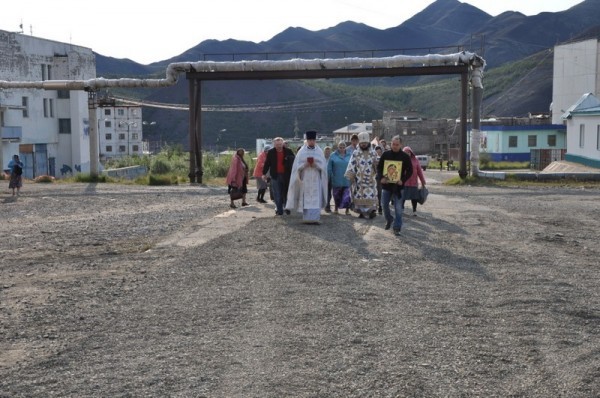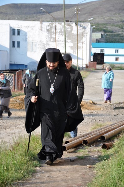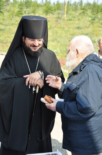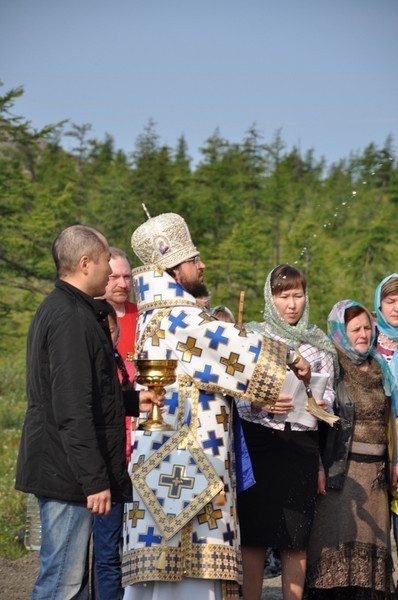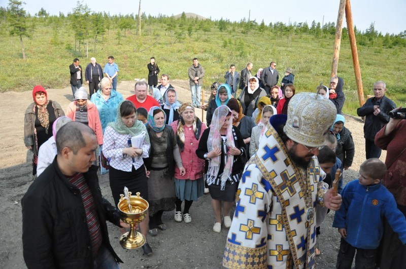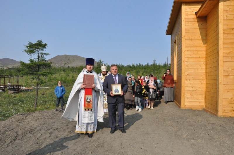 В голове мелькает предательская мысль: как хорошо, что жары мы не дождемся! 16 июля мы прилетели в поселок Депутатский – административный центр Усть-Янского района республики Саха. 17 июля епископ Якутский и Ленский Роман освятил новопостроенный храм преподобного Сергия Радонежского, совершил в нем первую Божественную Литургию и немедленно улетел в Якутск. И вовсе не потому, что не пожелал остаться на престольный праздник – просто самолеты из Депутатского летают далеко не ежедневно, и попасть в столицу республики можно либо 17, либо еще через несколько дней.