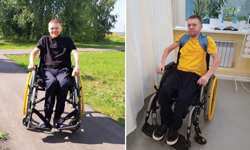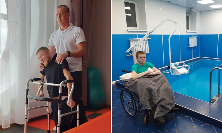 После 3,5 месяцев в больнице он прошел бесплатную двухнедельную реабилитацию в центре «Янтарь». Там научился сидеть в коляске и самостоятельно есть, удерживая ложку между сжатыми спастикой пальцами.
