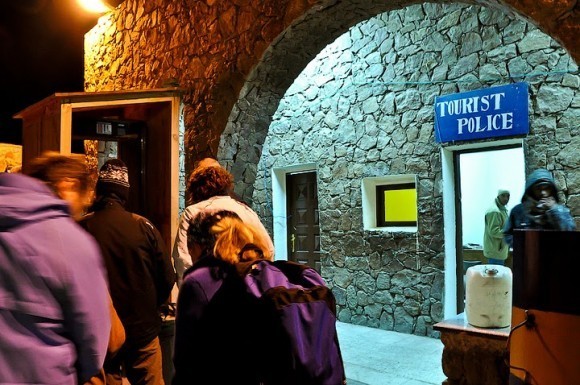 Начальная точка подъема - пост туристической полиции: металлоискатель, подробный досмотр и обязательный платный гид для сопровождения каждой группы.