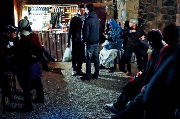 Спускаясь, заходим погреться, потому что холодно невыносимо. Не спасала московская зимняя одежда, несмотря на то, что температура не опускалась ниже нуля.