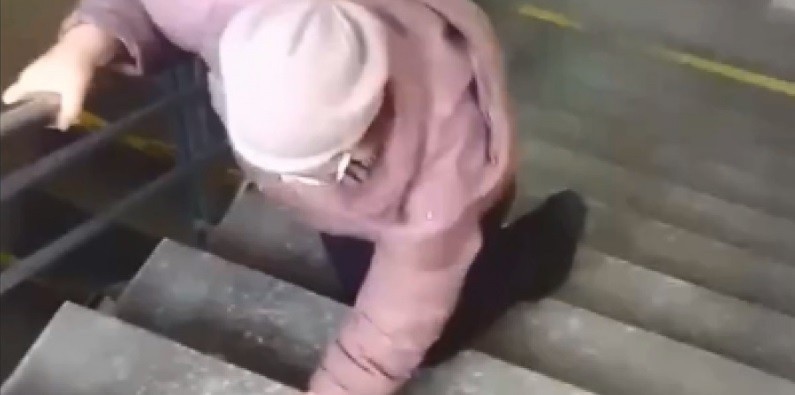 Видео, на котором видно, как пожилая женщина на коленях с спускается по лестнице, было опубликовано в одном из городских сообществ в социальной сети «ВКонтакте».