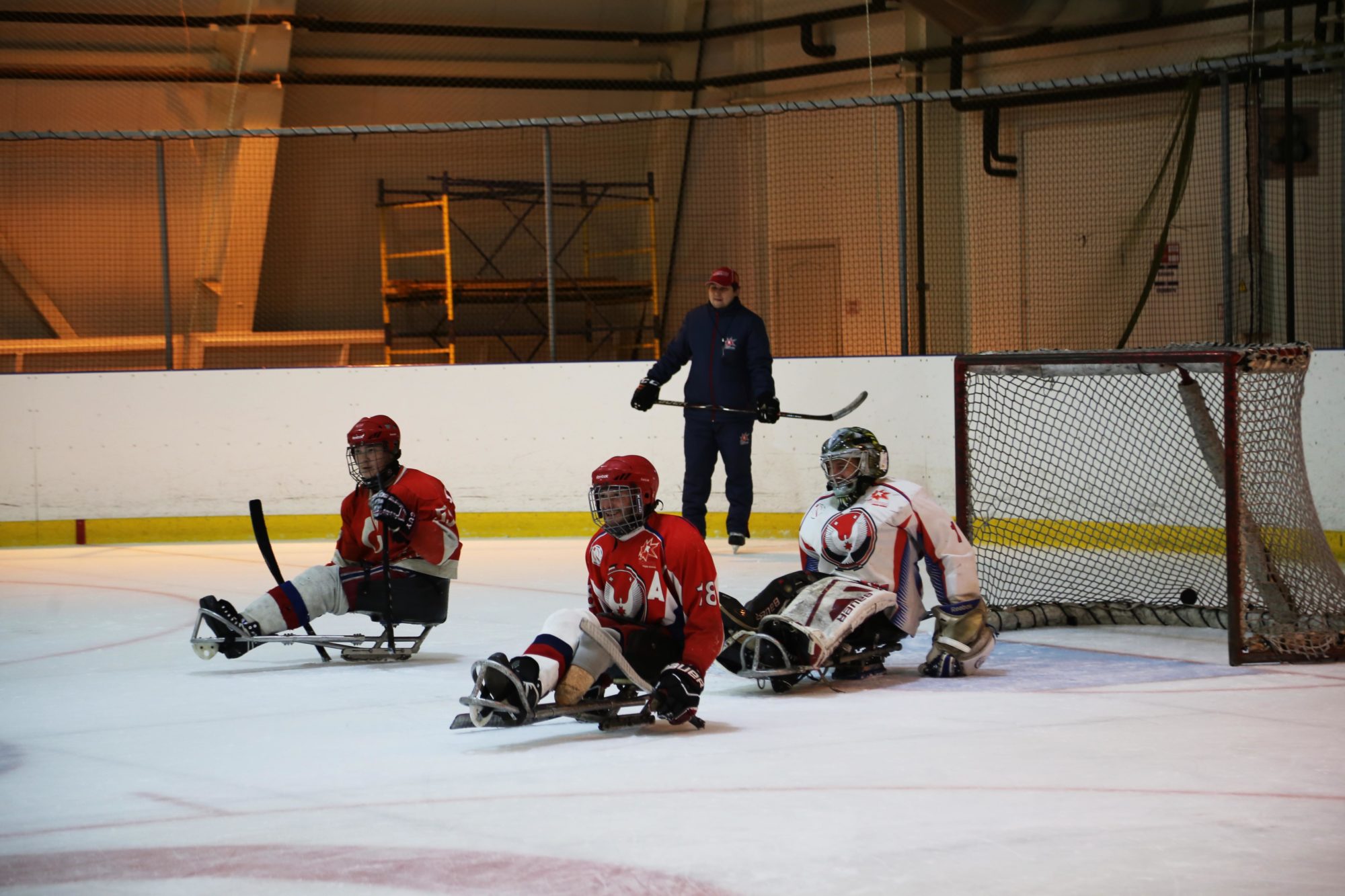 Центр адаптивного спорта на горнолыжном курорте «Чекерил» в Удмуртии. Взрослая сборная Удмуртии по следж-хоккею. Тренировка.