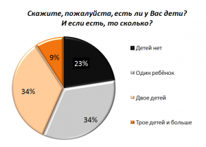 Почти четверть опрошенных россиян (23%) не имеет детей. Чаще бездетными оказываются опрошенные до 35 лет, в то время как среди опрошенных старше 45 лет не имеет детей менее десятой части. Многодетными чаще оказываются малообеспеченные респонденты, жители сёл и мусульмане, при этом среди православных доля многодетных семей чуть ниже, чем по России в целом. Полученные данные практически идентичны данным аналогичного всероссийского опроса службы Среда за 2011 год.