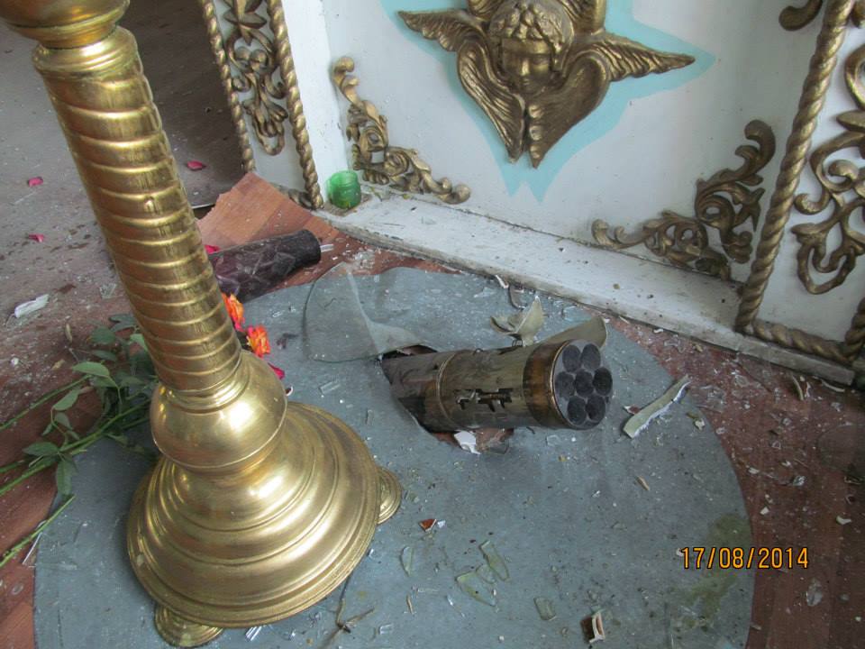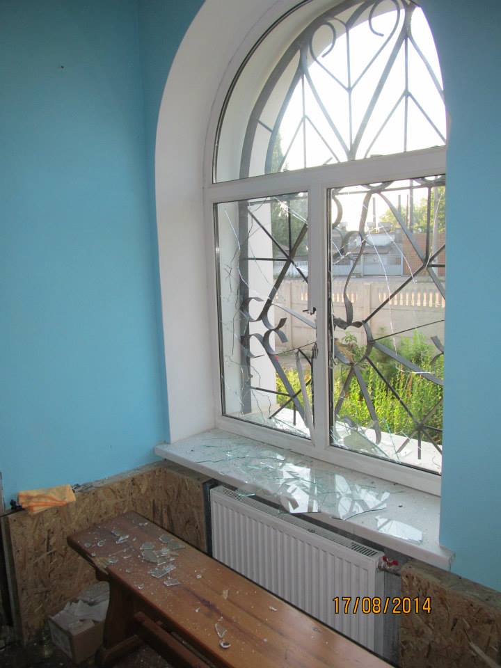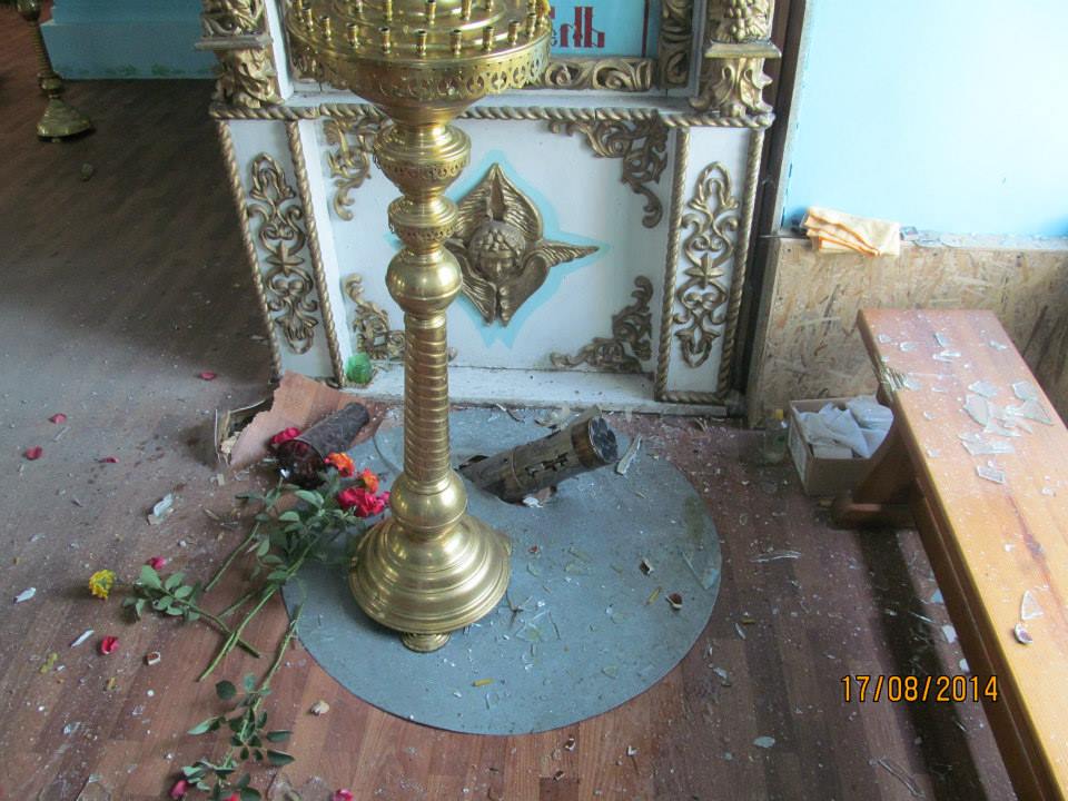 1,5-метровый снаряд проник в окно, вошёл в пол храма, слегка опрокинув вазу с цветами, стоящую у иконы Господа Вседержителя. Недавно настоятель и прихожане отмечали свой престольный праздник.