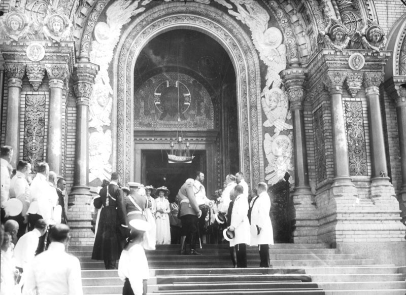 С проспекта Ленина я свернула улицу Коммунистическую, — и вся советчина осталась позади. По Макаровскому мостику перешла, как в другую эпоху. Вокруг своего Собора стояли ряды моряков: матросы в голубых гюйсах, офицеры в белых перчатках на эфесах золотых кортиков, адмирал с витыми шнурами, спускающимися с плеча.