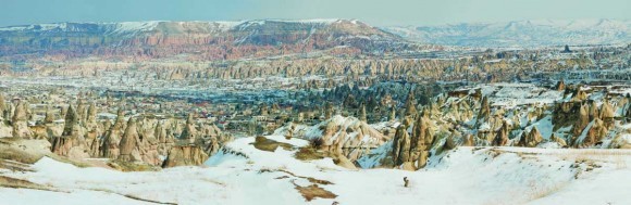Несколько тысячелетий назад два возвышающихся здесь, в центре современной Турции, вулкана – Эрджиес и Хасандагы – извергли на поверхность земли чудовищное количество огнедышащей лавы, превратившейся в мертвое, каменное море, в некоторых местах достигавшее глубины ста метров. На протяжении веков дожди, ветер и землетрясения, разрушая и все глубже размывая лаву, творили из туфа невиданные каменные изваяния. В результате этого «коллективного творчества» возник уникальный, фантастический природный пейзаж. Гигантские стелы, конусообразные пирамиды, застывшие каменные волны, реки и водопады, увенчанные «шляпками» грибы, трехэтажные «скульптуры» мистических животных, таинственные, бездонные пещеры.