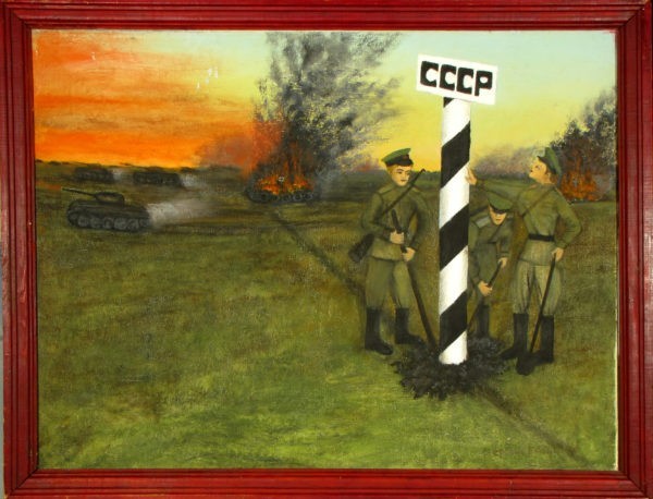 Базыленко С.И. Восстановление границы СССР (из серии «На пути к великой Победе»). 1985. Холст, масло. 60,6х80,4
