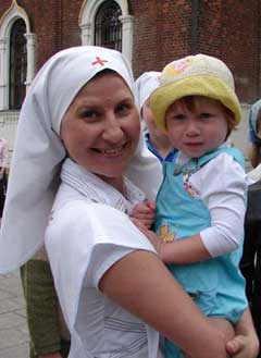 …Сегодня выписываются двое детей. Катюша и Миша. У годовалой Кати была повторная, очень сложная операция. Боялись, что не перенесет. Мама молилась, причащала девочку и на операцию я увезла Катю с крестиком на ноге. Девочка выжила! Сколько с ней было хлопот! Как она билась под руками врачей, ставивших ей капельницу, и мне приходилось ее держать, несмотря на крупные слезы и громкие жалобы: ”тя-тя-тя-тя-тя!” Теперь все позади. Девочка едет домой, и (слава Богу!) больше к нам не вернется. Только на консультацию.