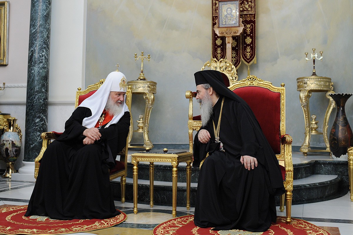 10 ноября. ПРАВМИР. 9 ноября 2012 года в Тронном зале Иерусалимской Патриархии состоялось братское собеседование Святейшего Патриарха Московского и всея Руси Кирилла и Блаженнейшего Патриарха Иерусалимского Феофила, сообщает Патриархия.ru.