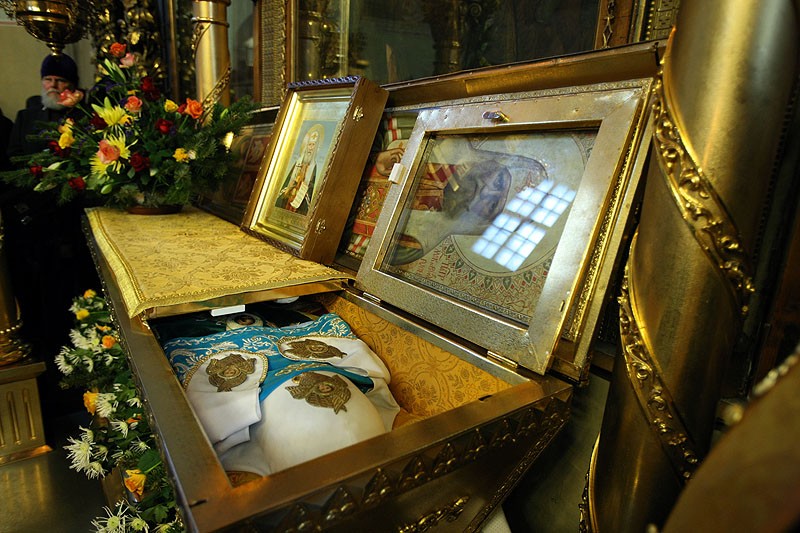 Поэтому сейчас к честным мощам Патриарха Тихона постоянно идет народ. В Большом соборе, где они покоятся, постоянно молятся люди. Целый день не прерывается эта цепочка паломников.