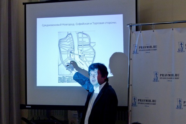 Сейчас я уже более пятнадцати лет занимаюсь историей средневекового Новгорода. Недавно у меня вышла книга, посвященная новгородскому вече, и совсем недавно я защитил докторскую диссертацию, посвященную этой проблематике. Надеюсь, то, что я буду говорить, не будет очень скучно еще и потому, что я работаю в школе. Надеюсь, это поможет мне донести то, что я хотел сказать, достаточно адекватным образом.