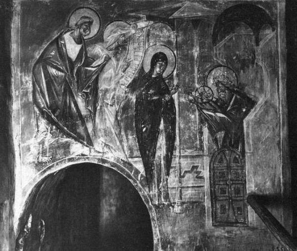 Во всем мире такого нет, как в Великом Новгороде. Так вот, в этой церкви Успения на Волотовом поле сохранились совершенно уникальные фрески невероятной красоты, экспрессии, силы. Это древние фрески, но при этом они настолько нестандартны и удивительны! И довоенные фотографии этих фресок сохранились, которые не могут оставить человека равнодушным, когда созерцаешь эти дивные, совершенно замечательные фрески. Бог даст — фрагменты этих фресок скоро будут восстановлены, возможно будет увидеть красочный слой, какие были краски на этих прекрасных фресках.