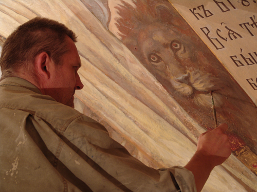 сохранившиеся фрагменты оригинальной росписи, наступает черед