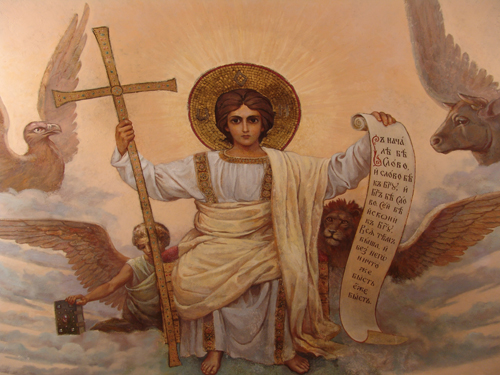 символы четырех евангелистов. Подобное изображение Васнецов сделал и в церкви в