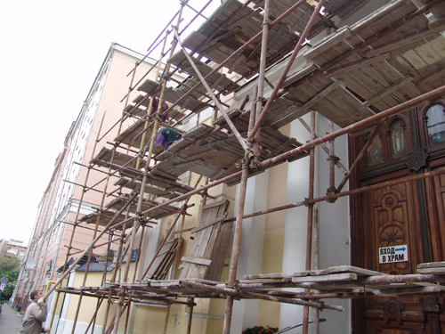 долгое время была закрашена и забыта. Сейчас во всем храме проходит капитальный