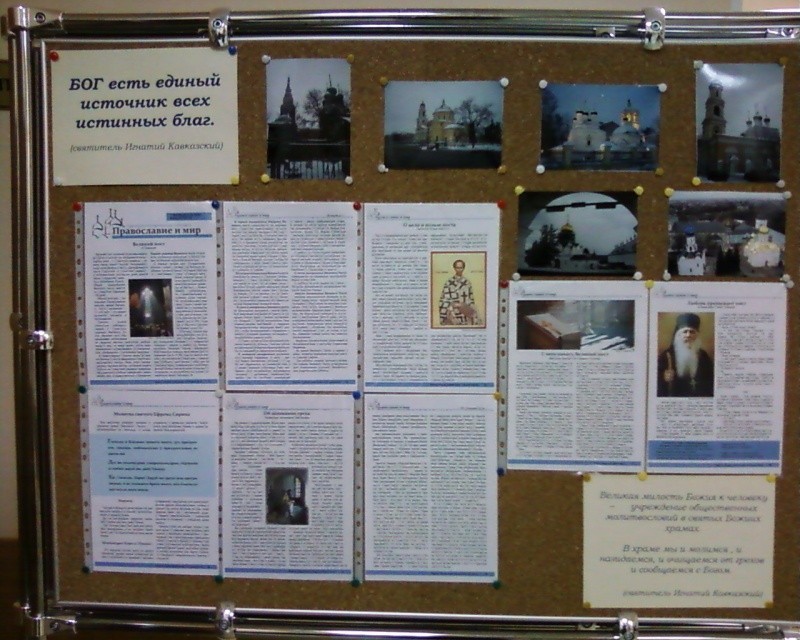 Более того, газета не позволяет расслабиться и нашим библиотекарям. Напротив стенда, где публикуется газета, в нашем храме находится библиотека, и если не ежедневно, то довольно регулярно туда обращаются люди, которые хотят откопировать материал, опубликованный в газете.
