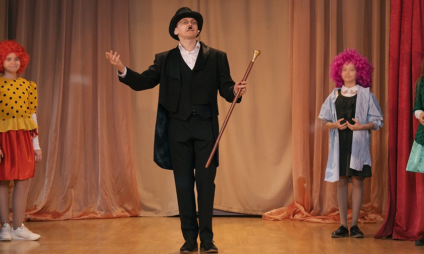 На уроке всегда можно уйти к компьютеру, что-то поискать, перезапустить. А что перезапустишь, когда в зале 300 зрителей, а у тебя, допустим, заел микрофон? Не скажешь: «Подождите, пойду поменяю батарейки». Как рассказывал наш режиссер, отличие профессионального актера в том, что у него есть условные 15 заготовок, которые он в нужный момент может достать. У меня как у учителя тоже есть свои заготовки. А вот в театре пока нет.