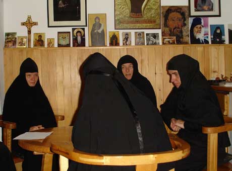 Челия Пиперская. Сюда мы приехали поздно вечером. Сестры сразу усадили нас за стол, собрали ужин. Заметив, что мы неуютно ежимся (по пути промочили ноги), они тут же, прямо в трапезную принесли большую корзину с теплыми носками и без лишних церемоний принялись нас переобувать. На завтра нам уже пора было отправляться дальше. Мы были в Челии меньше одного дня, но сестры прощались с нами, как с давними друзьями, просили обязательно приезжать снова. Настоятельница игумения Елена, провожая нас, не позволила нам одним переносить вещи и сама отнесла несколько чемоданов в автобус.