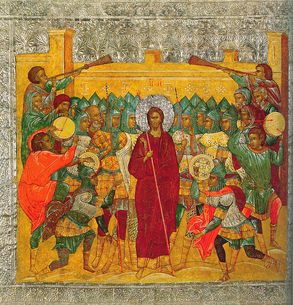 «И воины, сплетши венец из терна, возложили Ему на голову, и одели Его в багряницу, и говорили: радуйся, Царь Иудейский! И били Его по ланитам». (Ин. 19: 2-3)