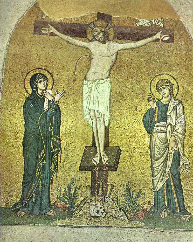 «Иисус, увидев Матерь и ученика тут стоящего, которого любил, говорит Матери Своей: Же́но! се, сын Твой. Потом говорит ученику: се, Матерь твоя! И с этого времени ученик сей взял Ее к себе». (Ин. 19: 26-27)