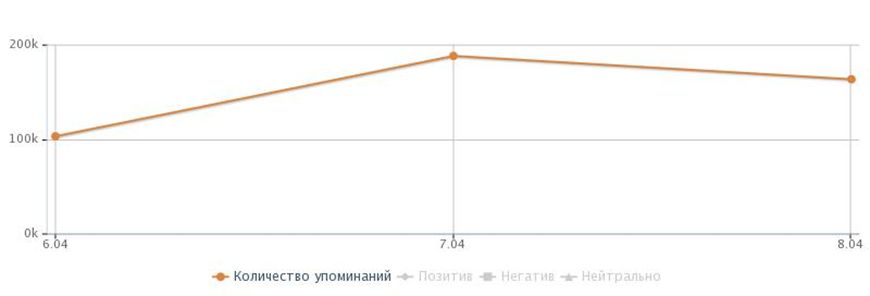 График частоты упоминаний Пасхи русскоязычными пользователями социальных сетей в период 6-8 апреля 2015 года