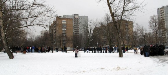 Митинг против строительства храма по «Программе-200» инициативная группа (коммунисты, защитники зеленых насаждений и просто противники строительства церквей) назначила на воскресный полдень. В это время по воскресеньям православные еще обычно не освободились после литургии — а в три часа дня в сквере на месте, выделенном под храм, община собирается на небольшие молебны. Между Новомосковской и Аргуновской улицами с февраля 2011 года выделен участок под строительство первого в Москве большого храма во имя равноапостольной княгини Ольги. Митинги, строго говоря, уже не могут привести к отмене этого решения: постановления, утвержденные на публичных слушаниях и голосованиях муниципальных депутатов, оспариваются не на улицах, а через суд.