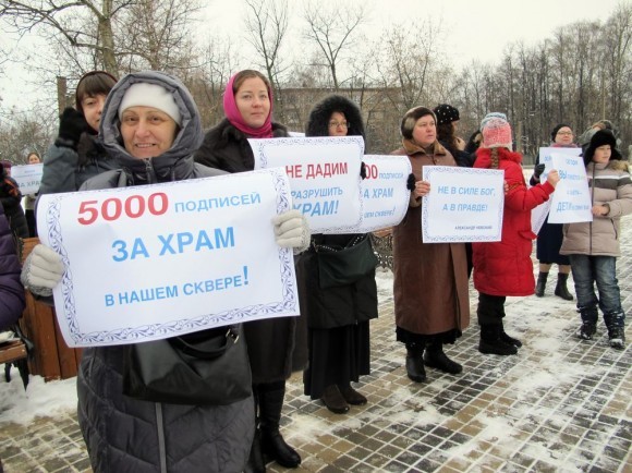 Противники строительства храма требуют сохранить сквер.
