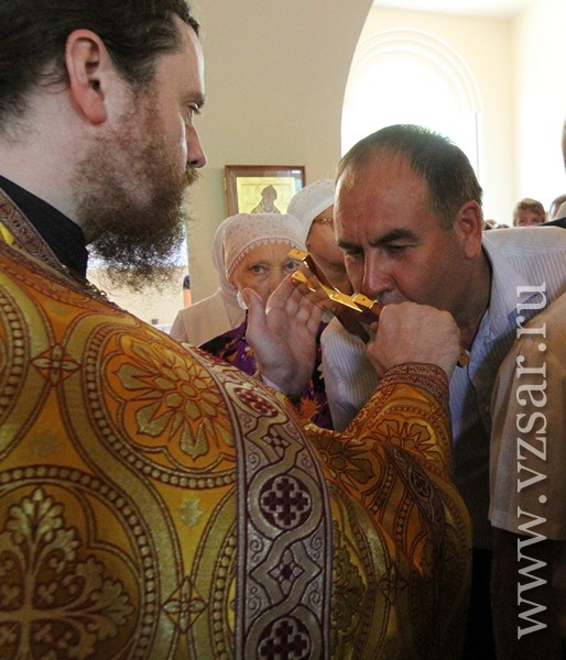 «Достаточно долгим и непростым был наш путь к этому моменту и тем более он радостен. Я хочу обратиться к тем, чьими усилиями и средствами этот храм возводился и продолжает возводиться. В первую очередь я хочу поблагодарить присутствующего здесь депутата областной Думы, директора фонда «Православие и современность» Сергея Георгиевича Курихина, потому что без него этого храма не было бы. Я также благодарю еще одного нашего благотворителя — главу города Саратова Олега Васильевича Грищенко, его помощь для нас так же была и остается очень существенной», — сказал настоятель.