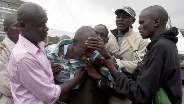 «Мы молились, — рассказывает 25-летний Дункан Обваму. – Мы встали в круг и держались за руки». Вначале в дверях показался ствол. Затем раздался выстрел, и упала молодая женщина, читавшая молитвы. Боевик Шабаба зашел внутрь и продолжил стрелять.