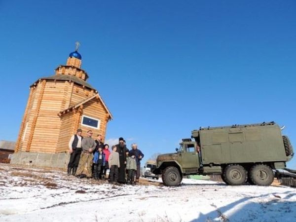 – Приходов у нас всего восемь. Самый далекий – в селе Усть-Каренга в 550 км от Шилки. Причем из этих 550 надо идти 350 км по бездорожью, а последние 200 – по замерзшей реке. Добираемся мы на походном храме, освященном в честь святителя Николая. Сделан храм на базе автомобиля ГАЗ-66, усилен БТРовским двигателем. На нём стоит куча оборудования, но самое главное – внутри есть жертвенник, престол и иконостас, правда, тряпочный, и можно совершать божественную Литургию. В храме всё устроено так, что команда из пяти человек может в нём жить совершенно автономно. Там, куда мы обычно забираемся, вообще электричества нет, или дают на два часа утром и два часа вечером.