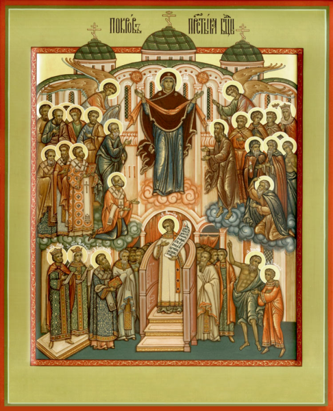 Так в чём же дело? Я думаю, сам образ Покрова есть величайшее откровение, икона, которая без слов, священным языком искусства, говорит больше, чем любые самые правильные слова. И эта проповедь доходит до самых потаённых глубин сердца. Посмотрите на икону.